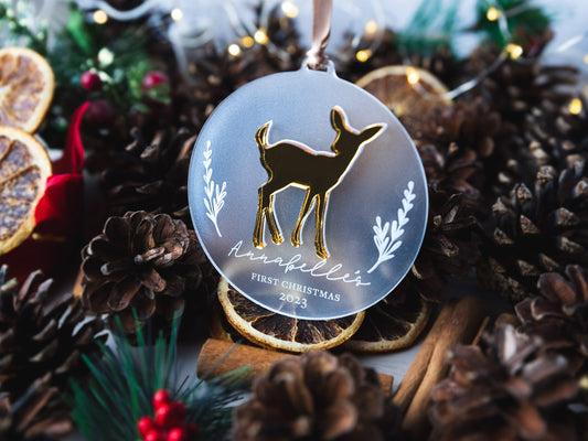Personalised Baby's First Christmas, Pine Branch Design Bauble